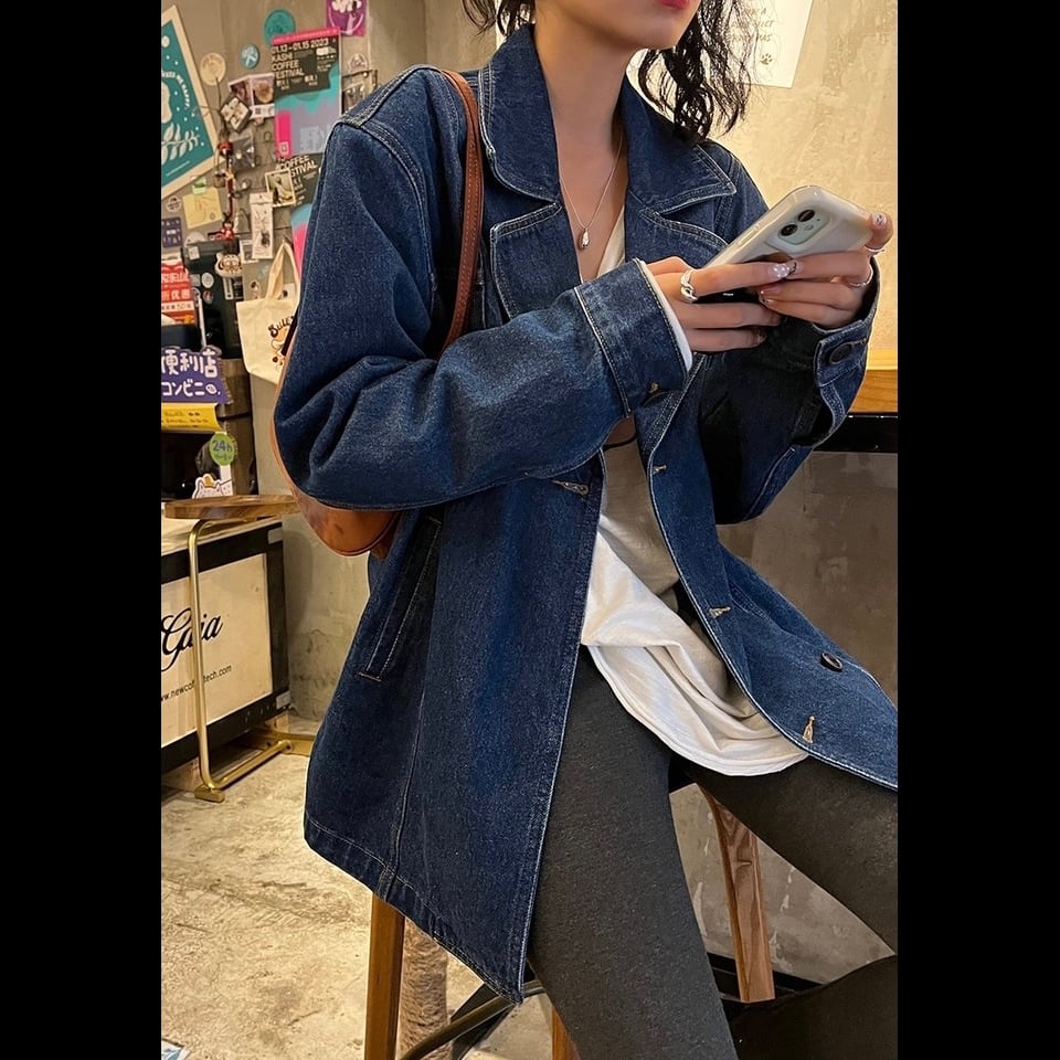 ノッチラペルルーズデニムジャケット〘at0508〙